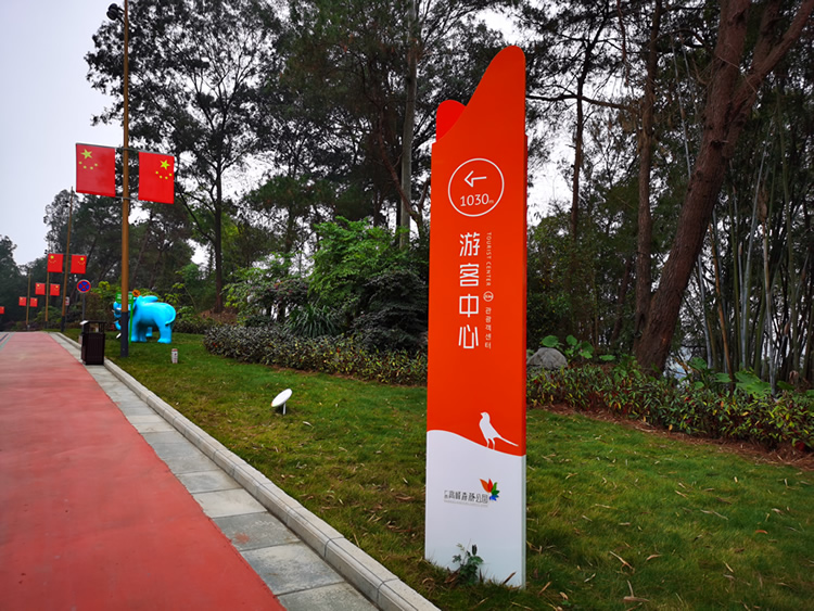 如何貫徹到實際定位呢? 可以從標志導向板的素材、造型設計、顏色等級著手。標識標牌的材料對標識導向系統風格的危害至關重要。
