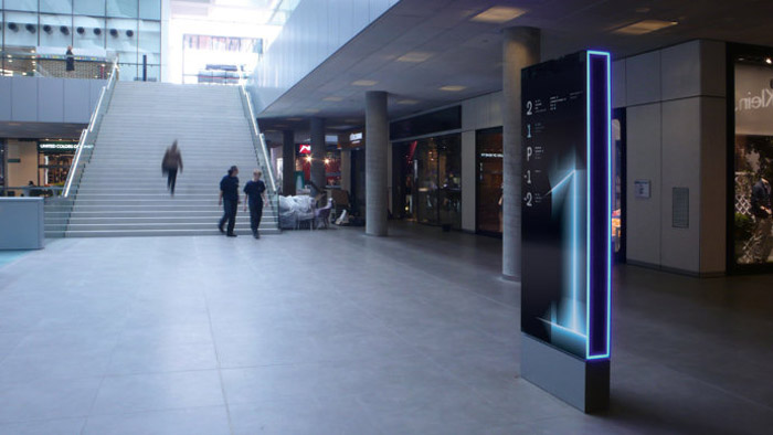 三級導視:進入到商場內部,指示功能區域或者工作區域的導視可以稱之為三級導視。例如:大堂的索引牌、百貨區、餐飲區等功能區的指示、電梯間的商業樓層指示牌等。