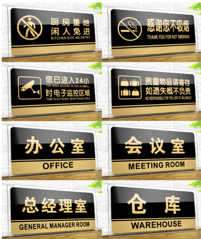 辦公樓中的功能標(biāo)牌主要包括溫馨提示標(biāo)語牌、公共安全警示牌、開水間、洗手間指示牌、天氣預(yù)報和日期提示標(biāo)牌、桌面臺牌等。明快齊全的功能標(biāo)識牌既能給人方便也提高了效率,已成為現(xiàn)代大廈管理中的必需品。