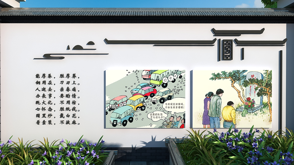 美麗鄉(xiāng)村文化墻在形式上更能體現(xiàn)振興發(fā)展的內(nèi)容要求。新中式木紋裝飾的設(shè)計,在大程度上保留了鄉(xiāng)村古樸的風(fēng)格,經(jīng)典優(yōu)雅,不落俗套。