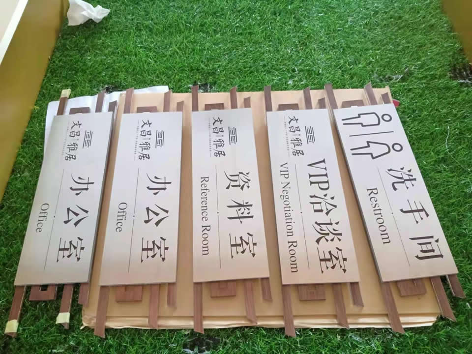 廣告標(biāo)牌當(dāng)成一張宣紙,在寫下中國經(jīng)典的書法,它自有風(fēng)采。要有宣紙一樣的凹凸材質(zhì)承托 其書法風(fēng)格。掌握好細(xì)節(jié)與質(zhì)感,小小的標(biāo)識配上背景燈和亮漆,連廁所標(biāo)識也能變得高端大氣上檔次。